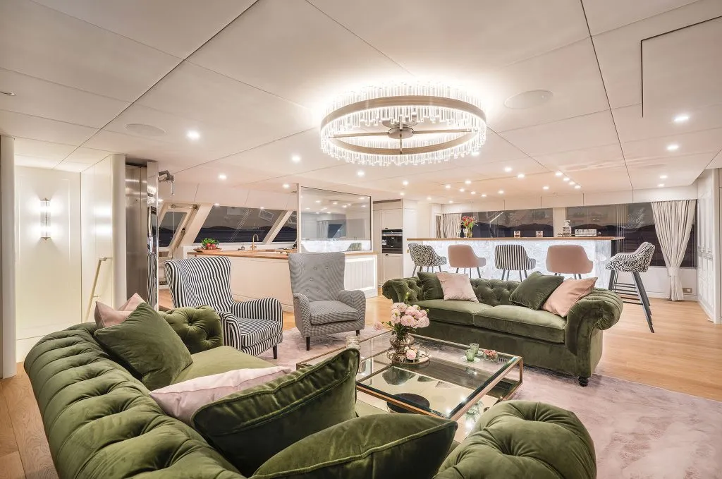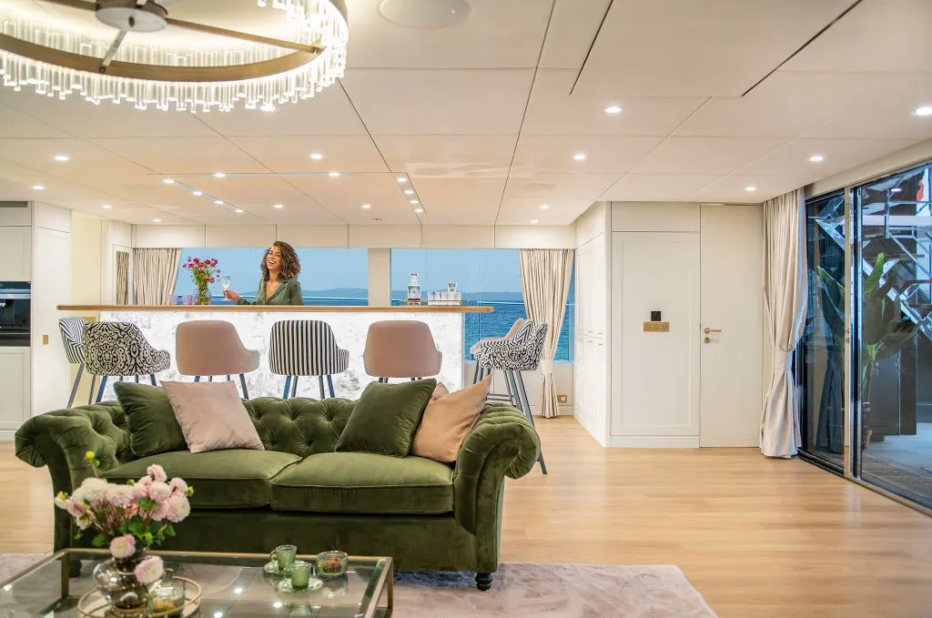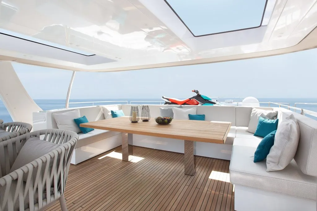 Key features include a specially designed lounge and a spacious beach club equipped with folding platforms, catering to the needs of luxury yacht enthusiasts.